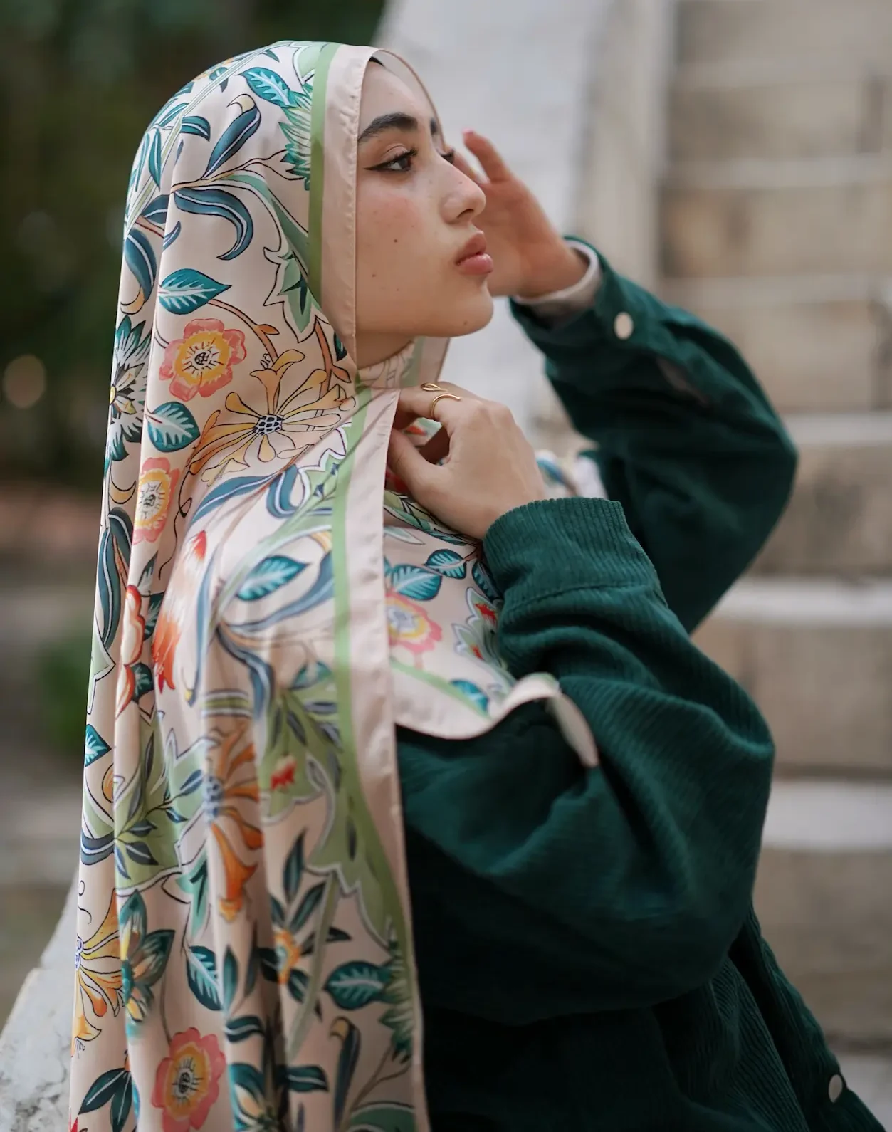 This floral composition adds a soft yet vibrant touch to both casual and elevated looks.